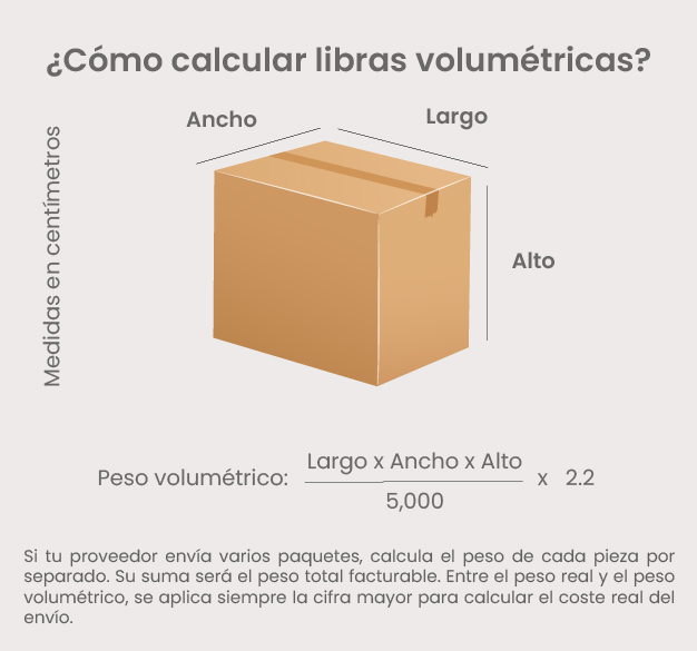 *Tarifas basadas en peso real o volumen, aplica a cobro el mayor. Asegúrate de consultarle a tu proveedor las medidas del paquete y peso para estar seguro de la tarifa a cobrar.